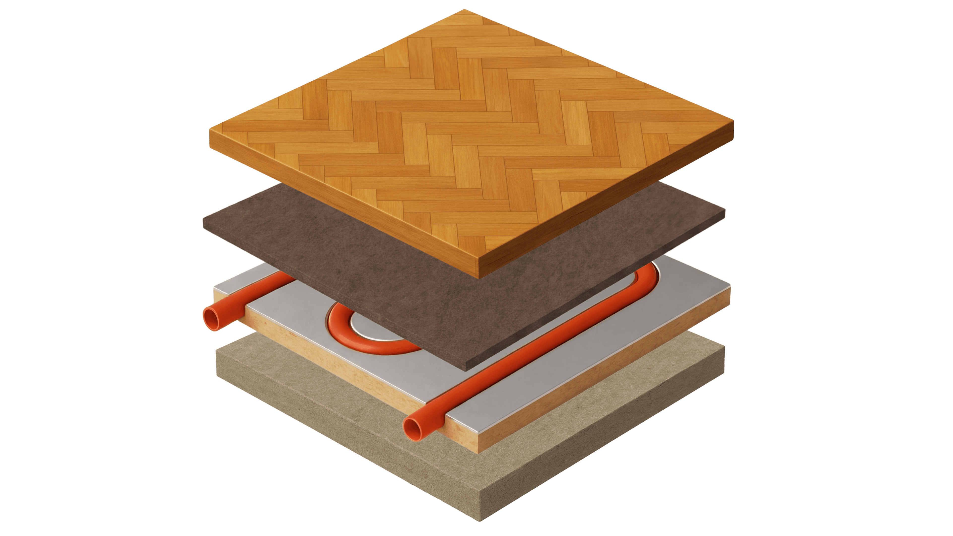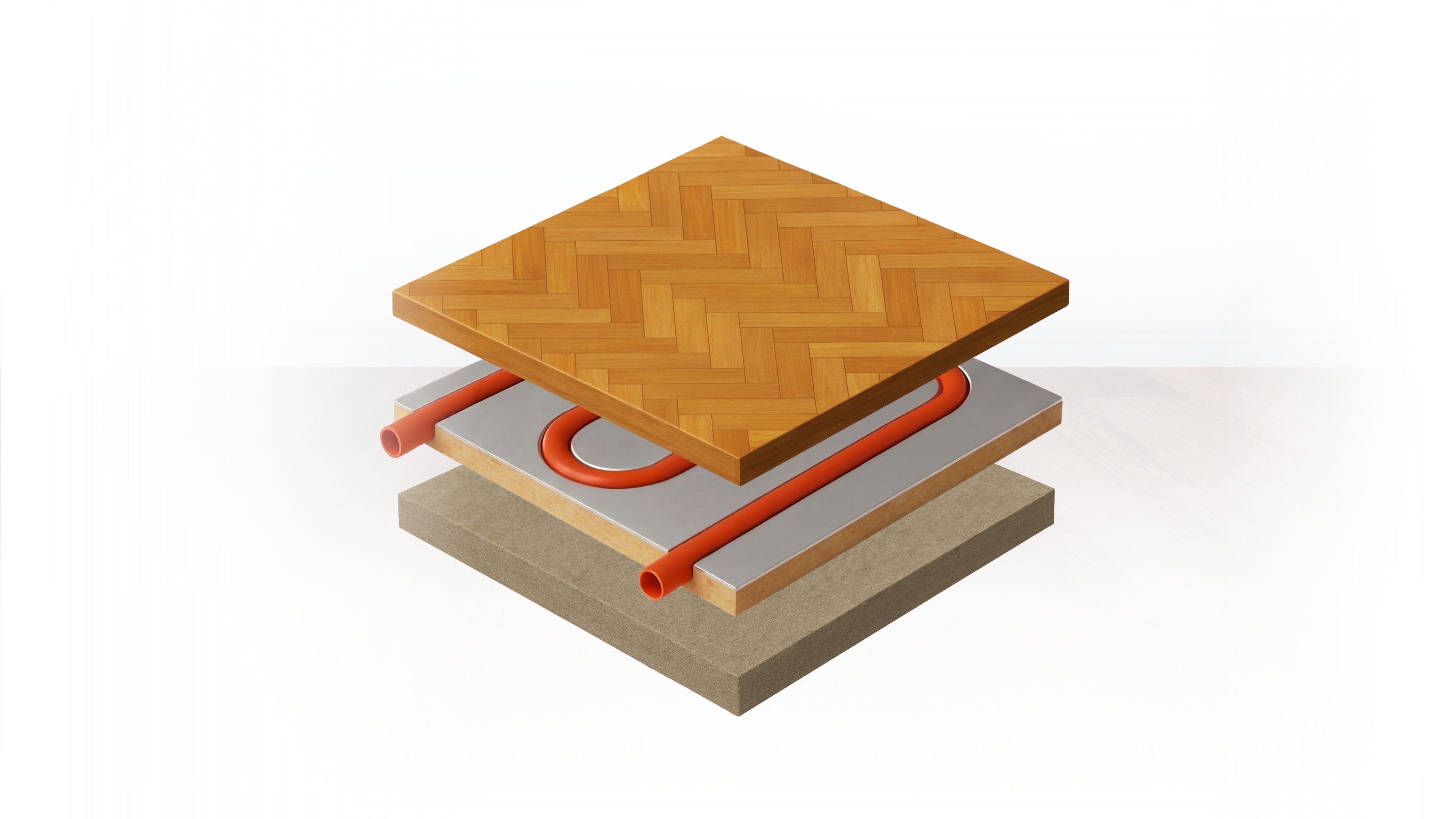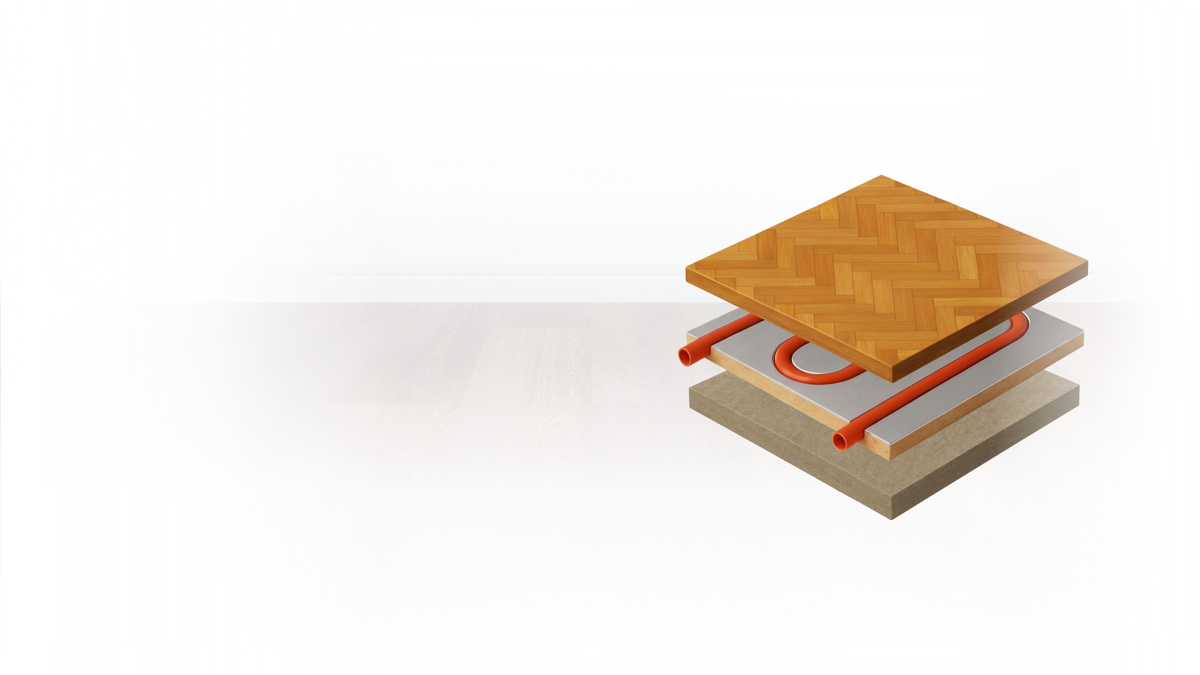Keine Ausgleichsmasse erforderlich. Das THERMOslim System wird direkt auf den ebenen Untergrund verklebt, anschließend kann der gewünschte Bodenbelag unmittelbar darauf montiert werden.